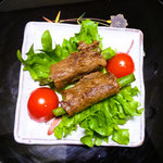 材料 霜降り牛肩ロース肉薄切り 6枚 アスパラガス 1束(5本) フリルレタス 2枚